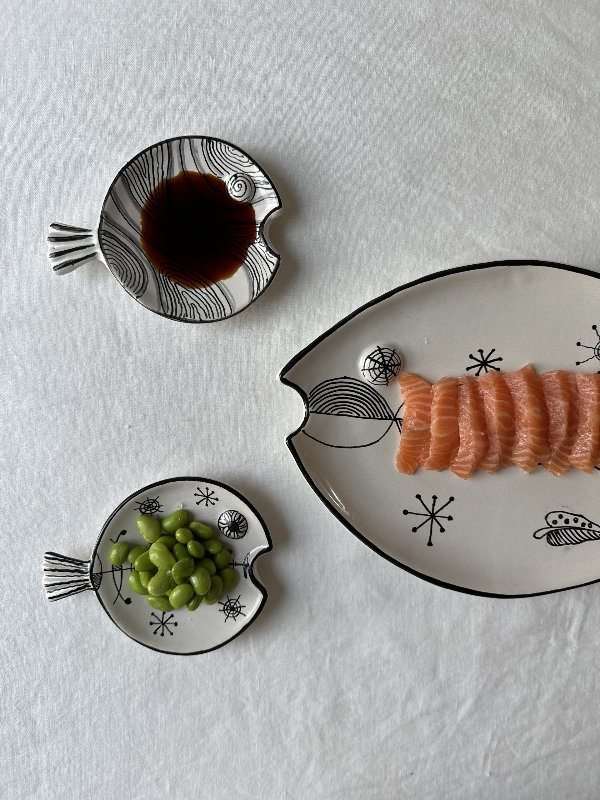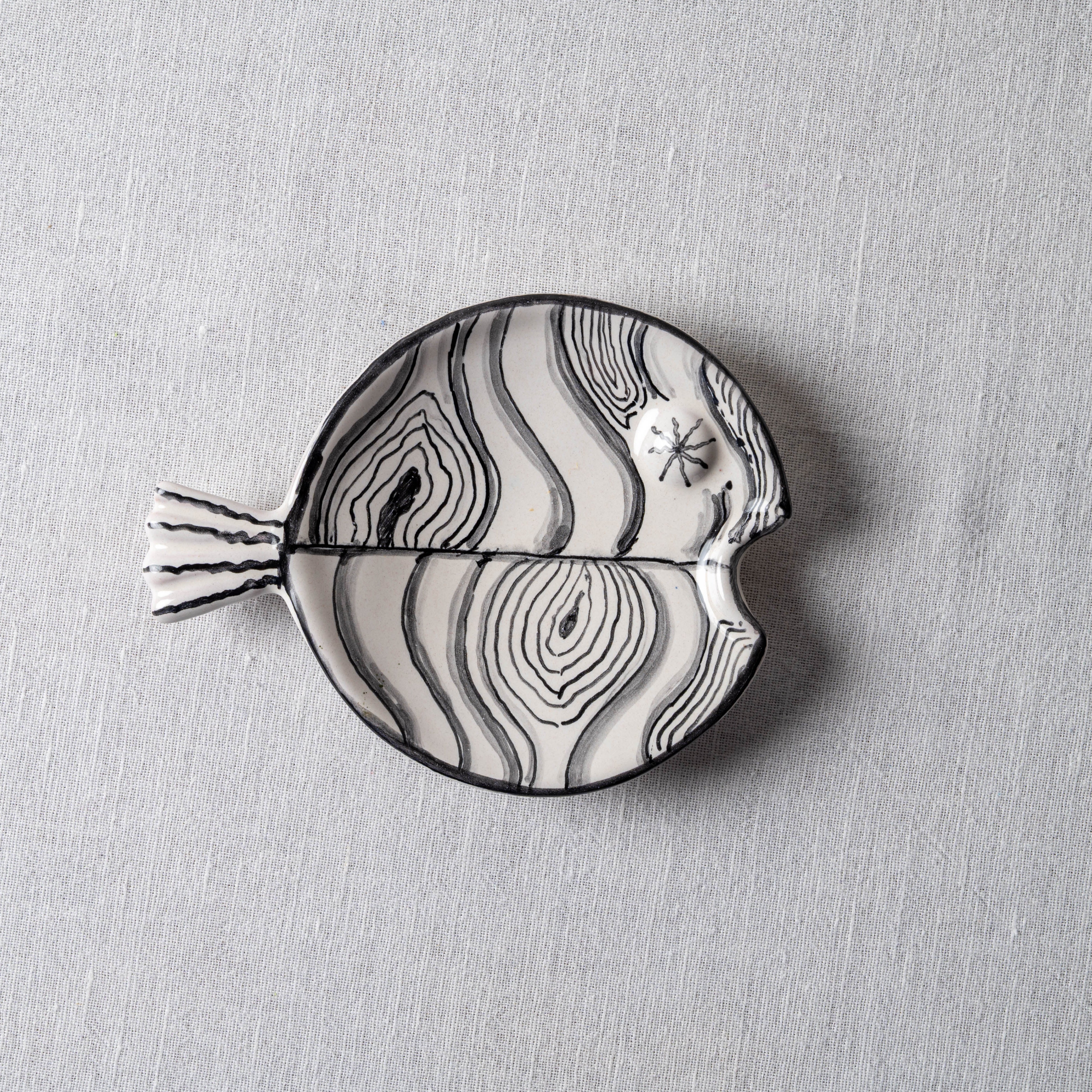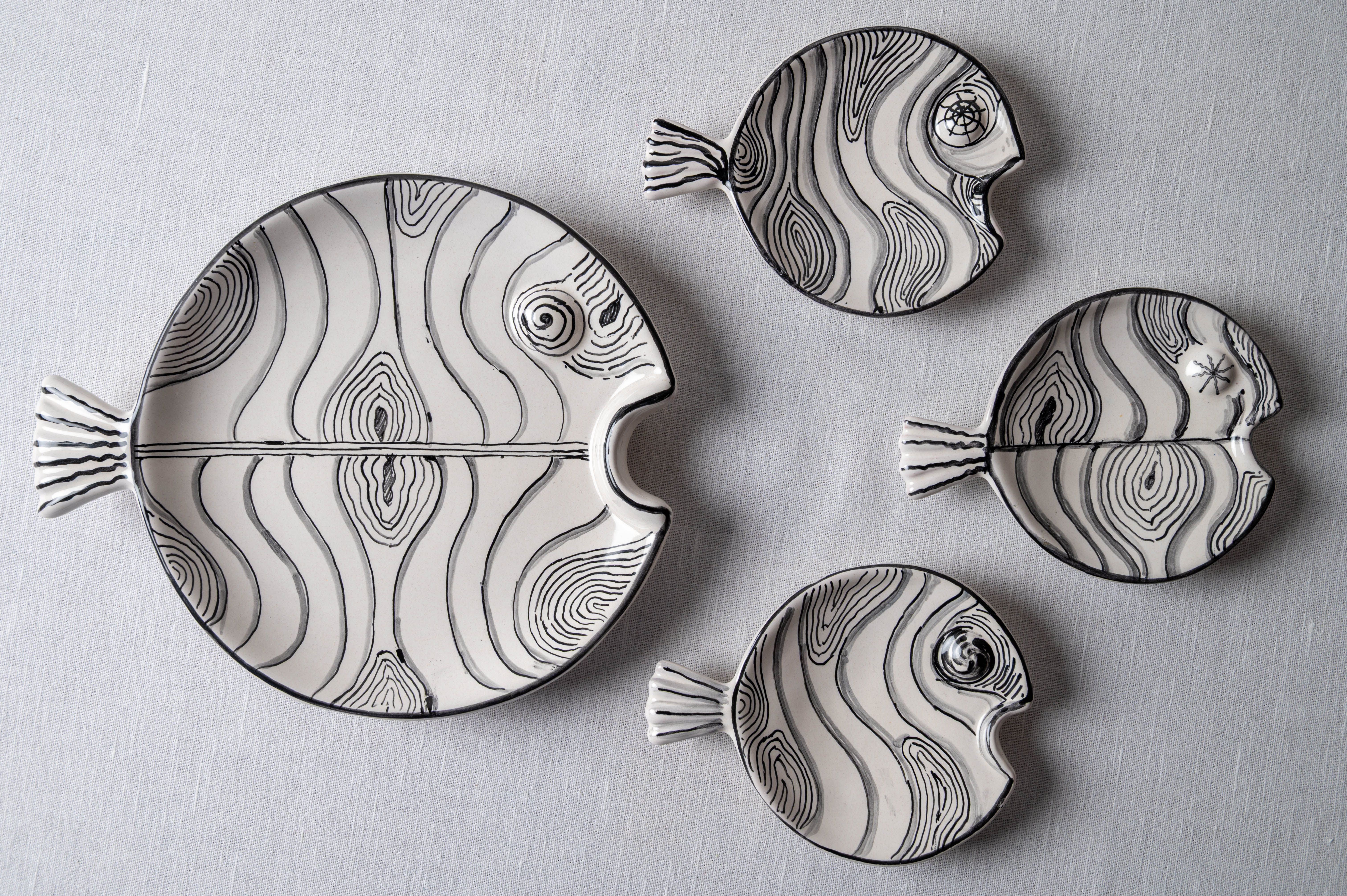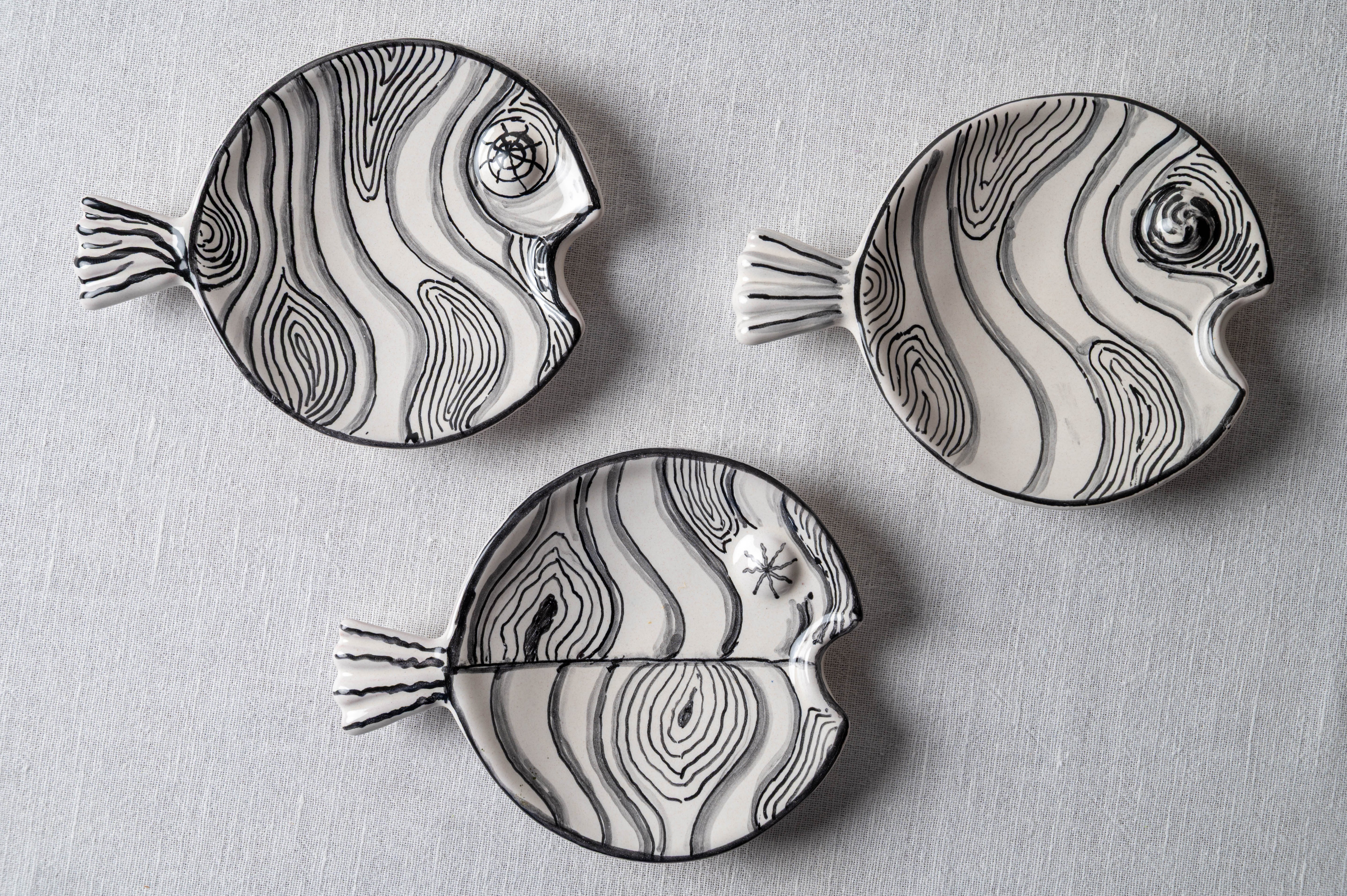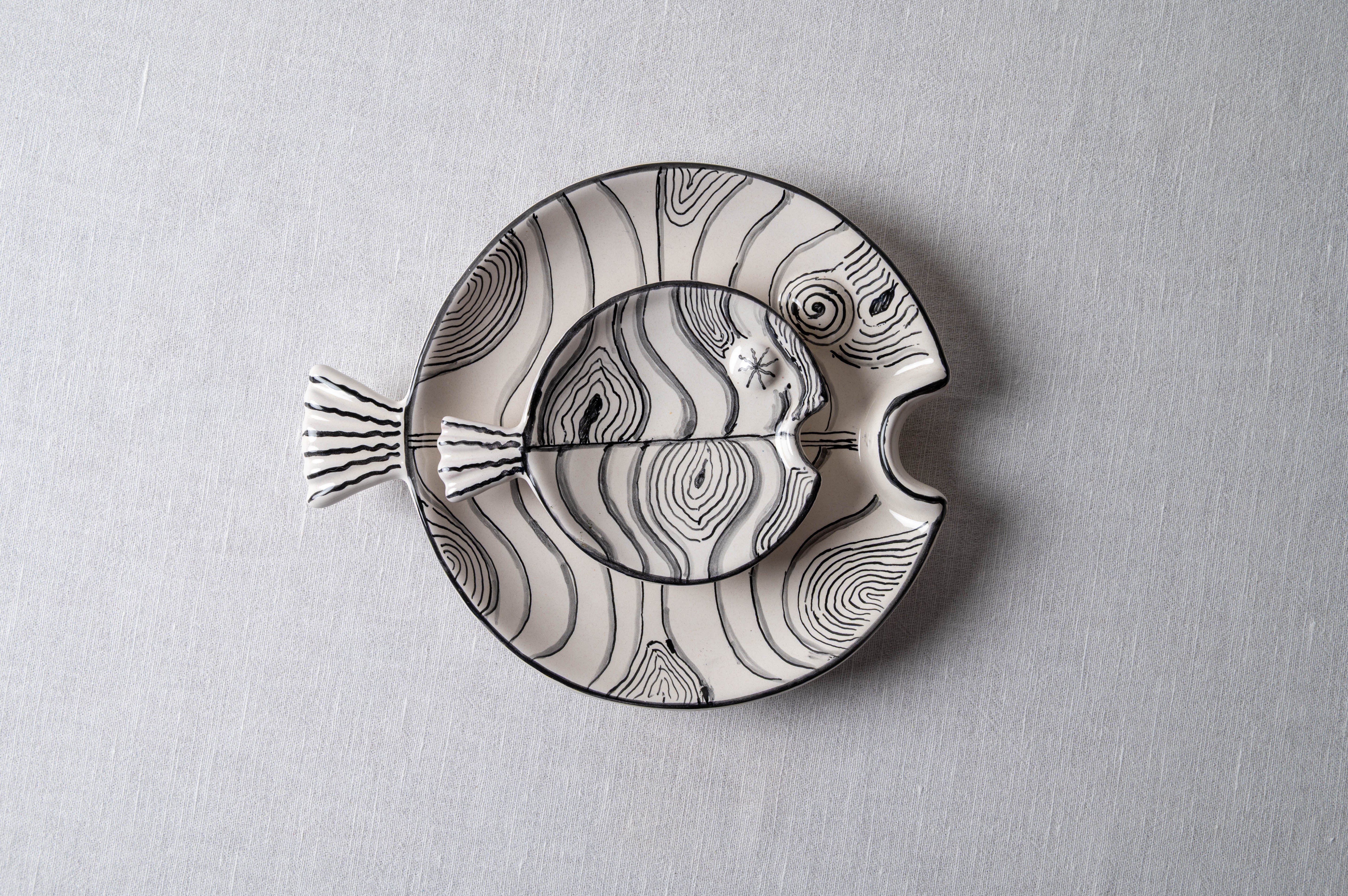 Meet the artists who crafted this Fish Plate Round (S) Mrs. Hiding in the Waves