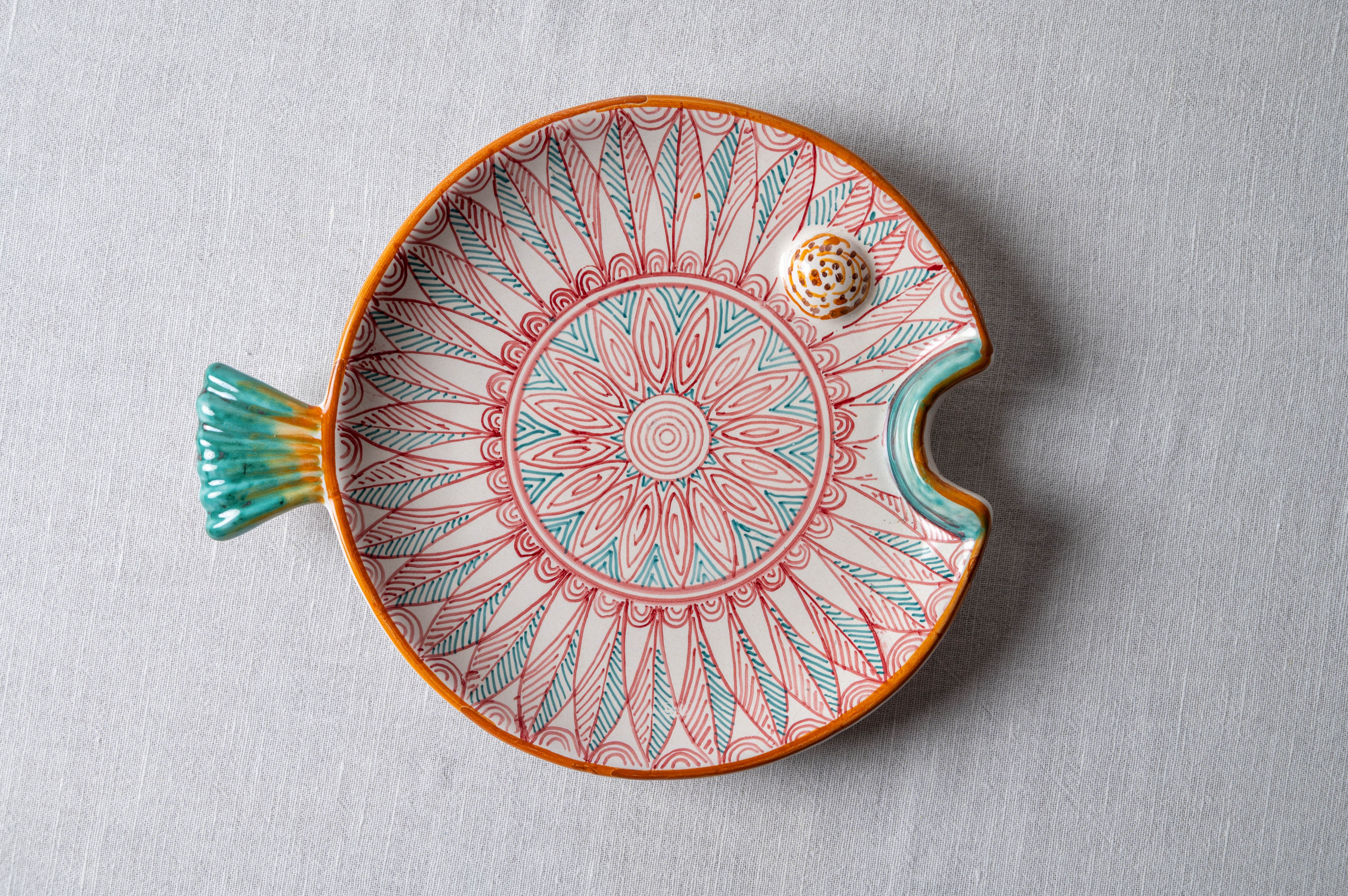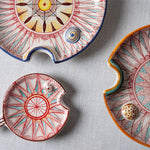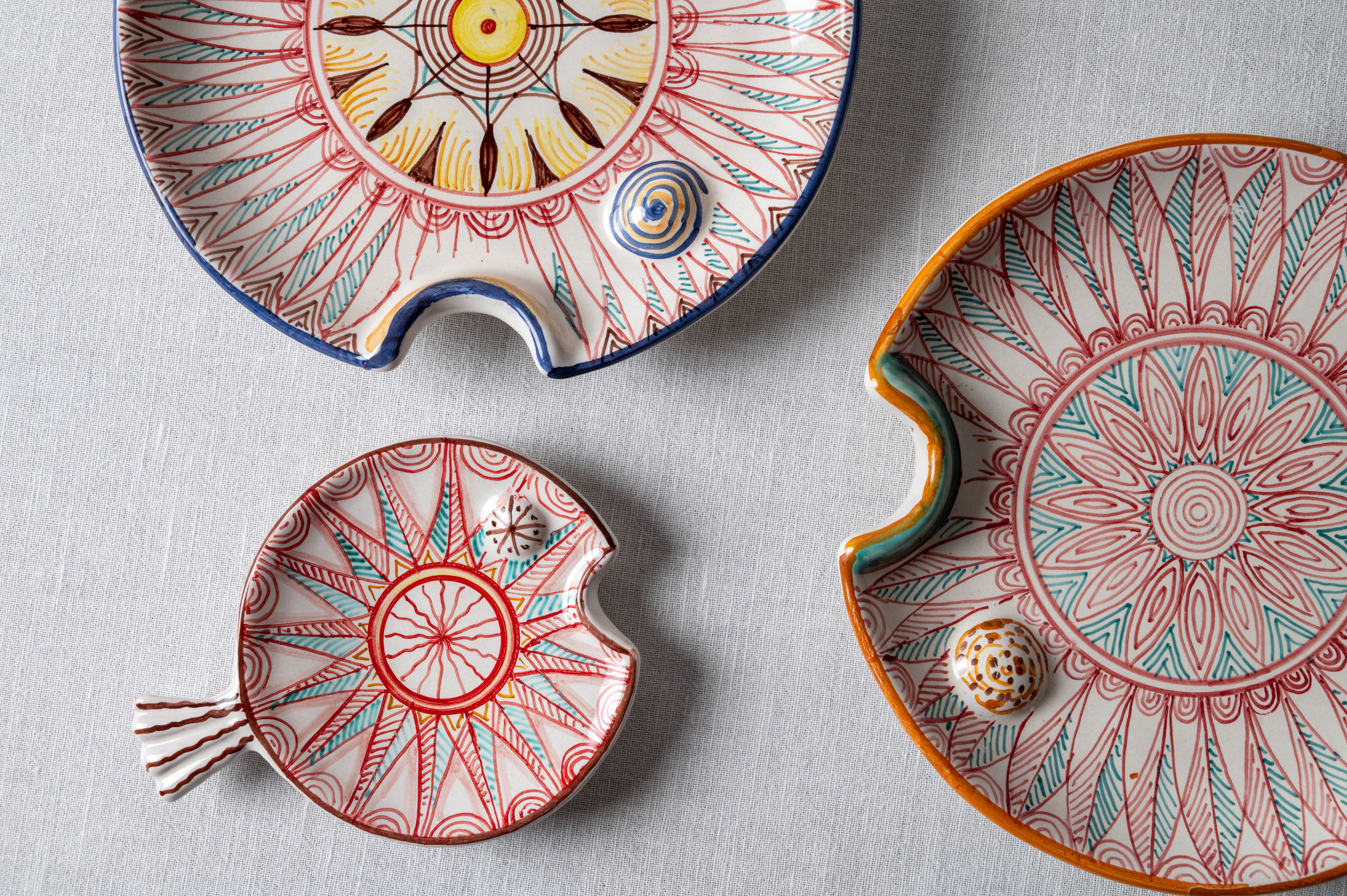 Meet the artists who crafted this Fish Plate Round (L) Red Sunset Breeze