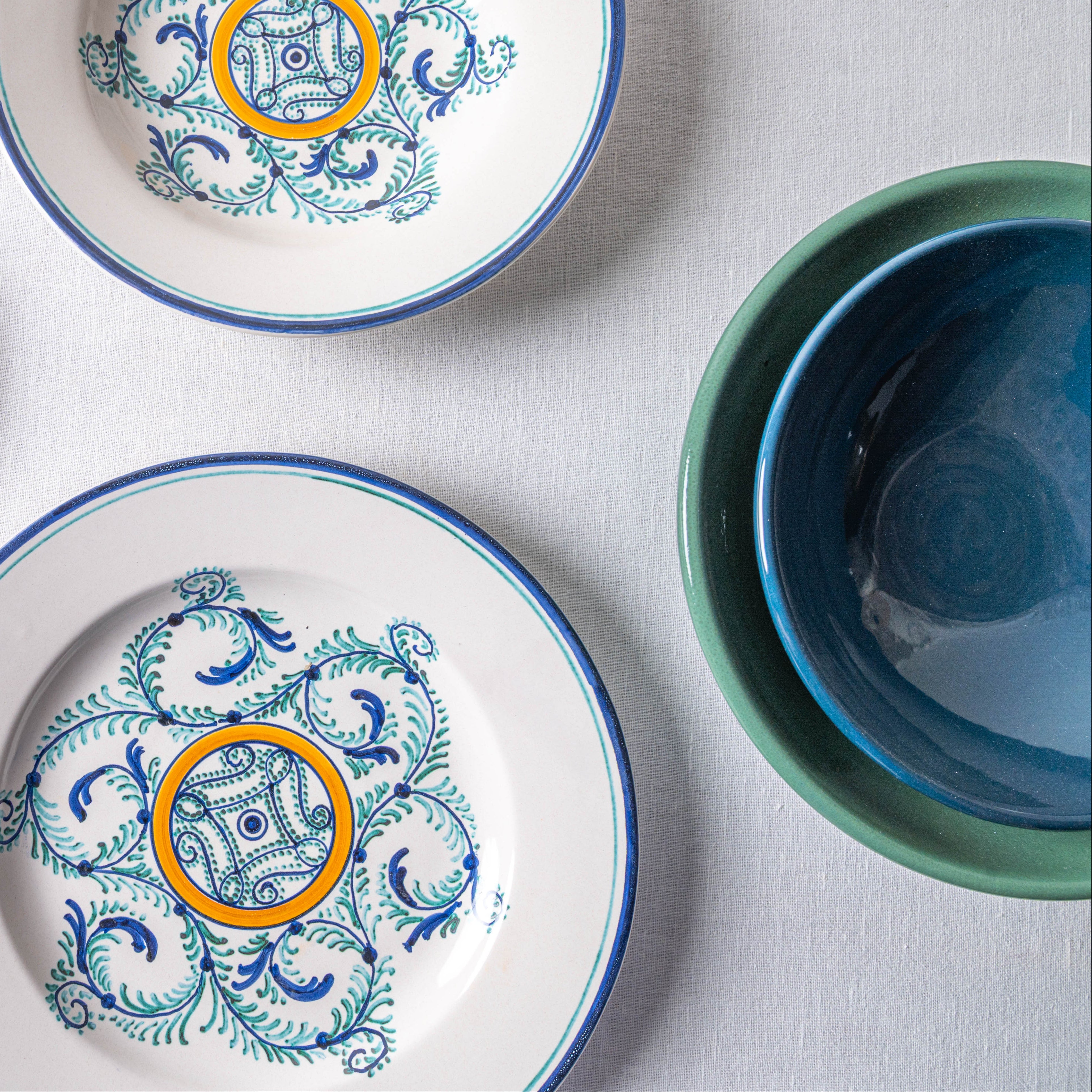 We source our clays from regions neighboring Castelli. This minimises transportation footprints and ensures responsible sourcing. Even the vibrant colors adorning our ceramics are carefully chosen. We partner with Italian producers who prioritise sustainability and food safety.